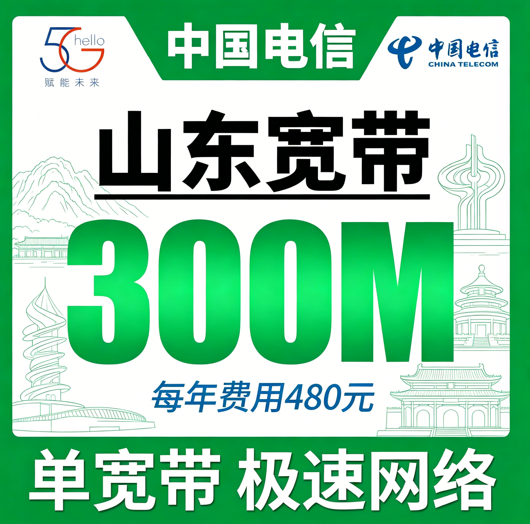 山东单宽带电信480元年享300Mbps