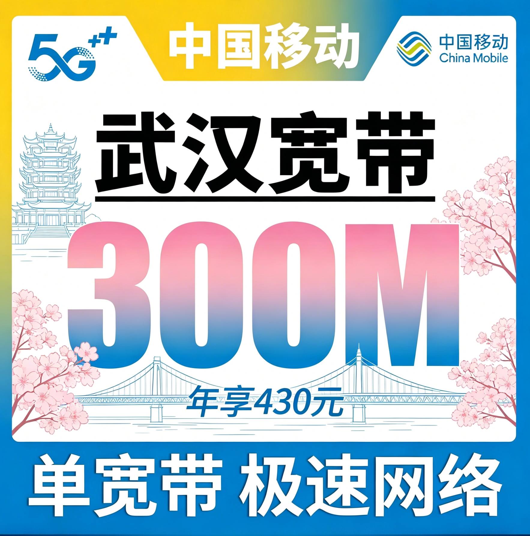 武汉单宽带移动430元年享300bps