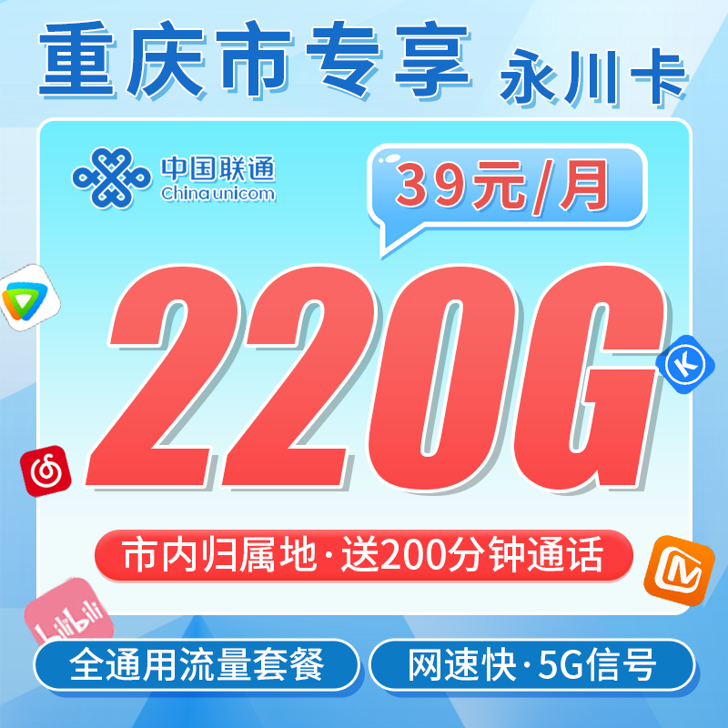- 首月39元按天扣除,220G按天折算到账;第2-24个月39元包220G全国通用+200分钟